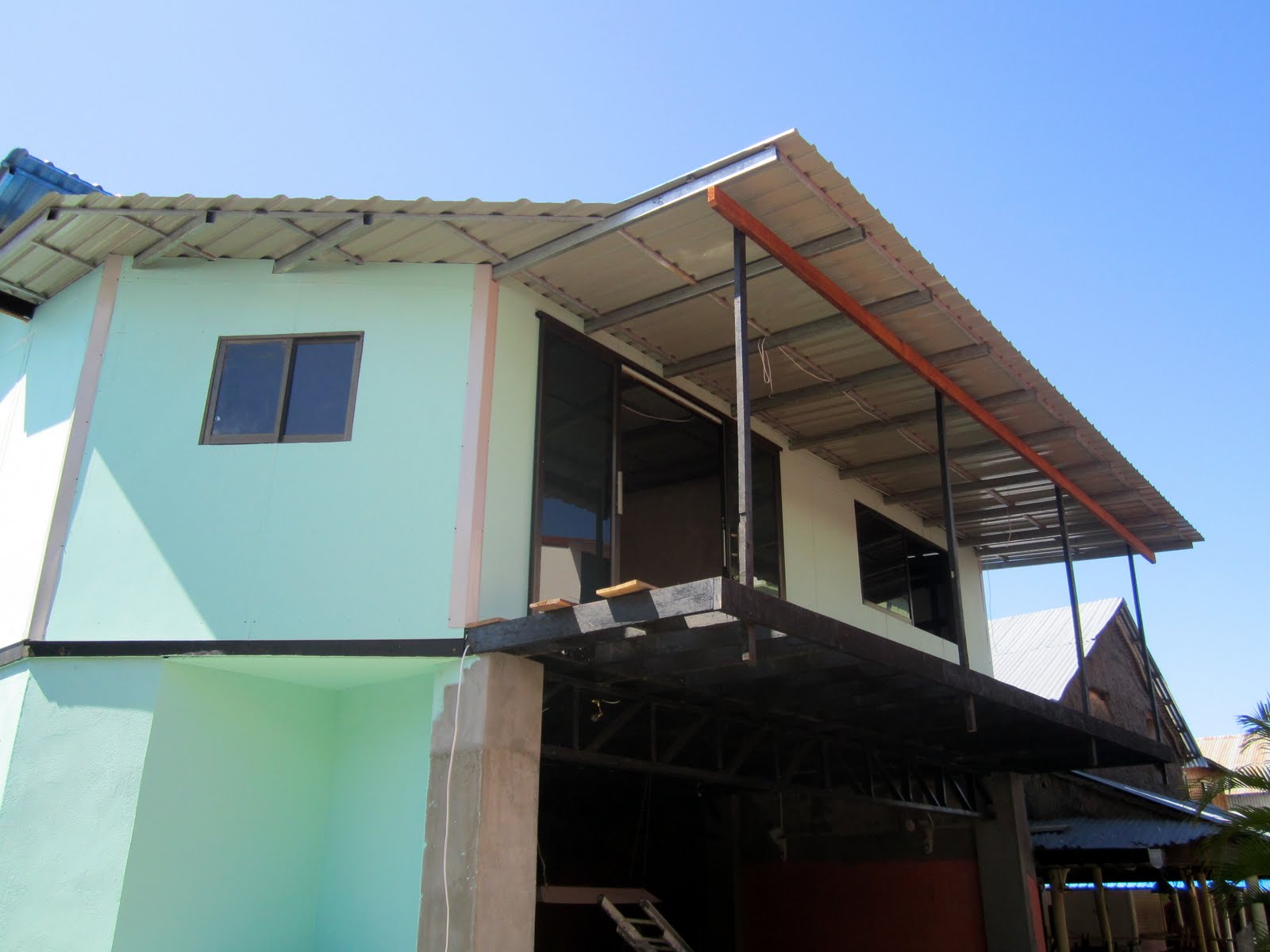 Obwohl ohne Fundament, fanden wir einen Weg, mit Leichtbauweise, auch 2 Etagen mit 6 Appartments zu bauen, natürlich alle mit Metalldach und hohem Brandschutz.
